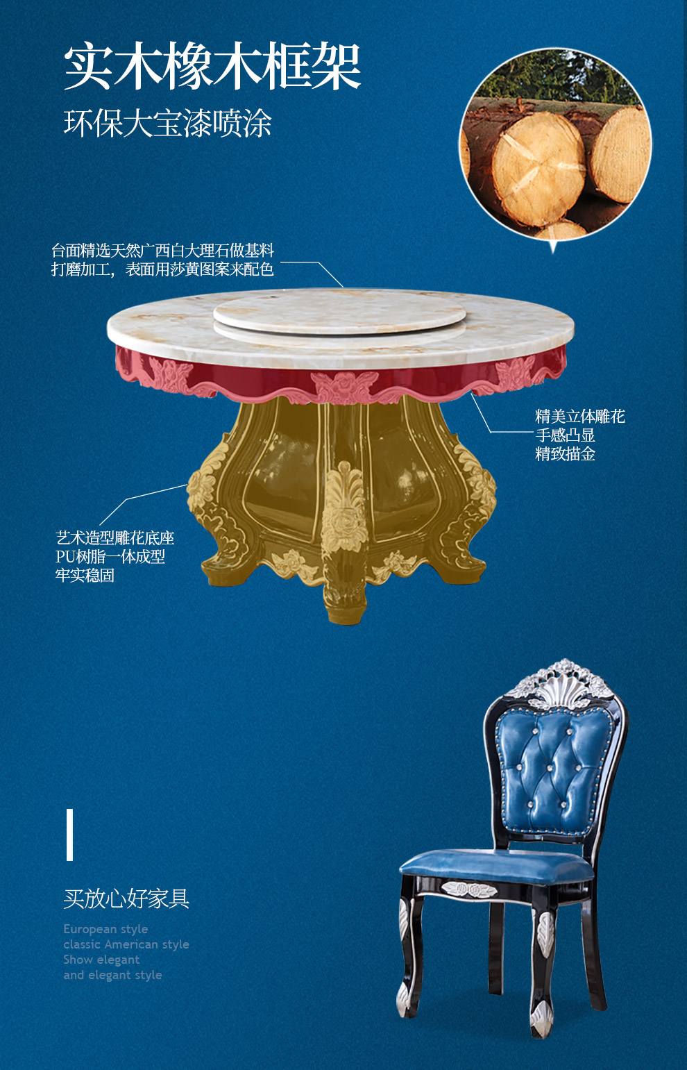 梦美斯宣布テーブル大理石丸テーブル新古典木枠テーブルセット欧風彫刻大戸型テーブル652 1.3/1.5 m円卓【写真価格ブランド見積】-京東