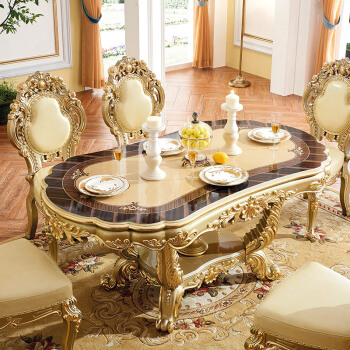 夢美斯宣布テーブル全実木彫刻欧式テーブル大戸型別荘レストラン家具豪華彫刻ライステーブルセット2027長テーブル【写真価格ブランド見積】-京東