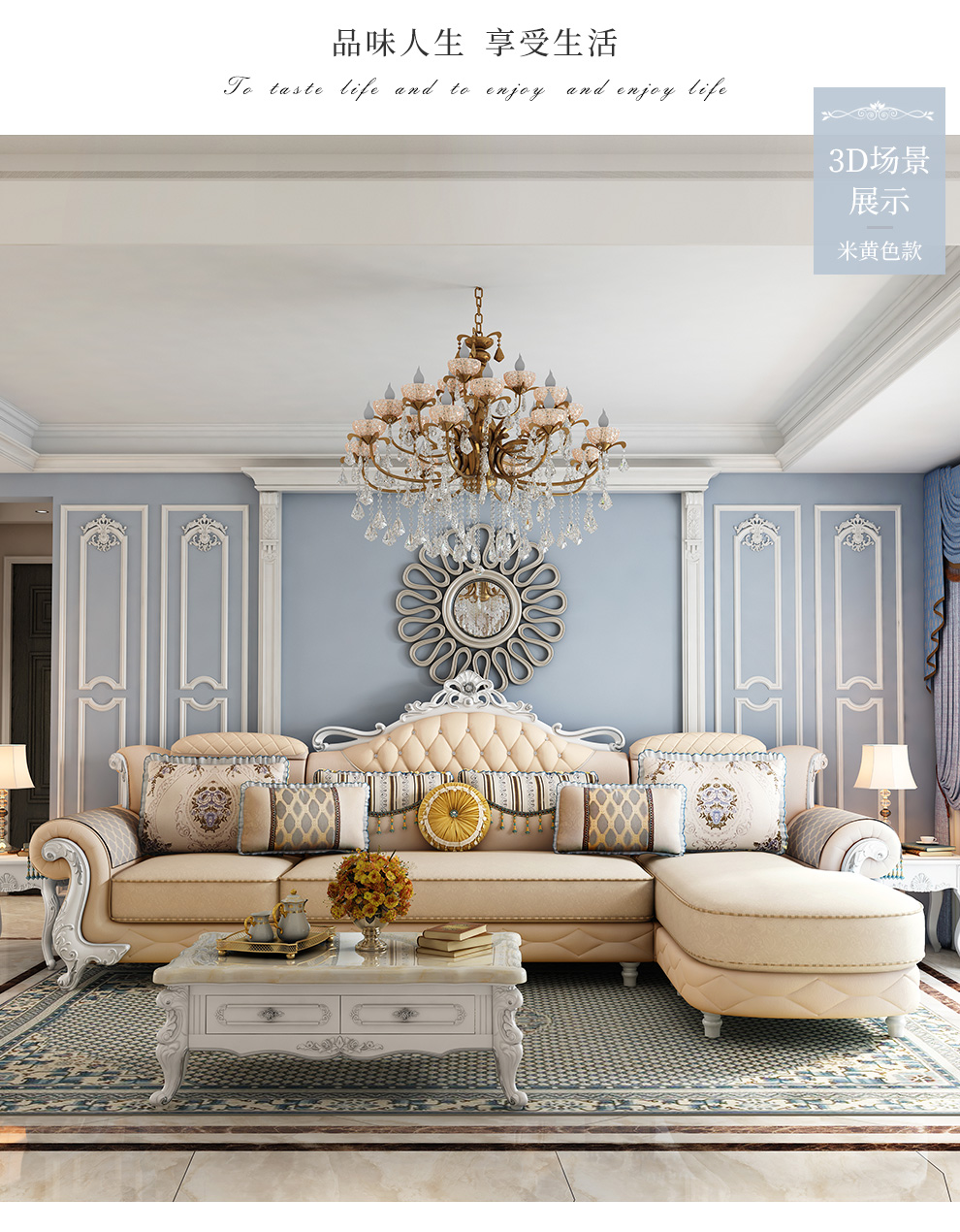 | 商品名称 | 夢美斯宣ソファ布芸ソファー欧式布芸実木ソファーセットリビングセット3人の小戸型豪華家具B 83 1+3+貴妃【青スタイル】 |