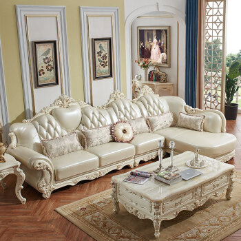 夢美斯宣欧式本革シャンパン色ソファフランス式アメリカ式実木彫刻角ソファセット大小の部屋型客間家具135+3+貴妃