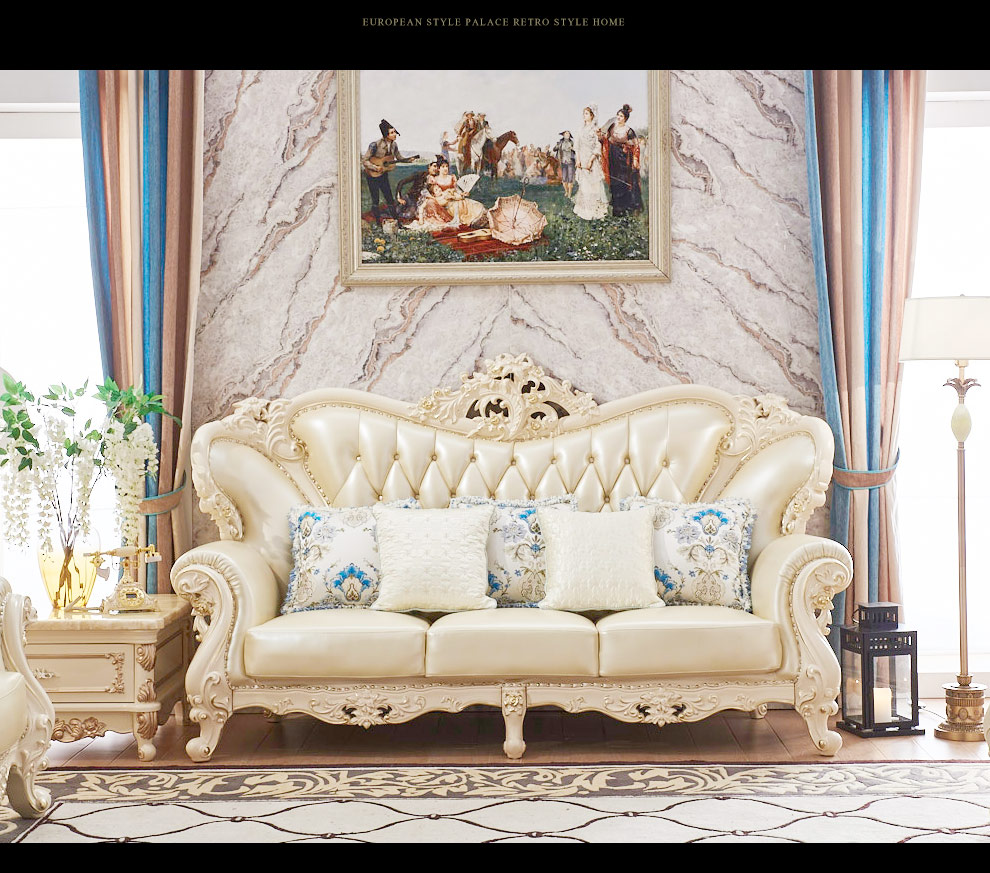 | 商品名称 | 夢の美斯宣欧式の真皮の実木の彫刻の豪華なスーツの頭の階の牛皮の大きい戸型の別荘の客間の123ソファーの5109+2+3は組み合わせます |